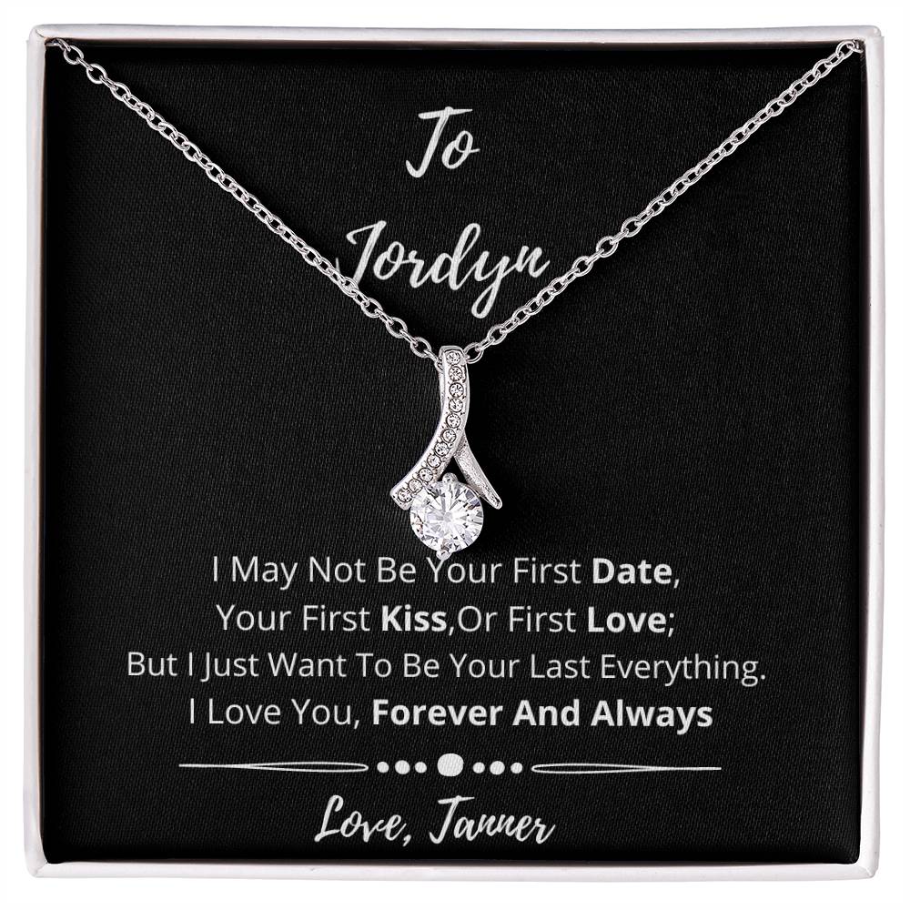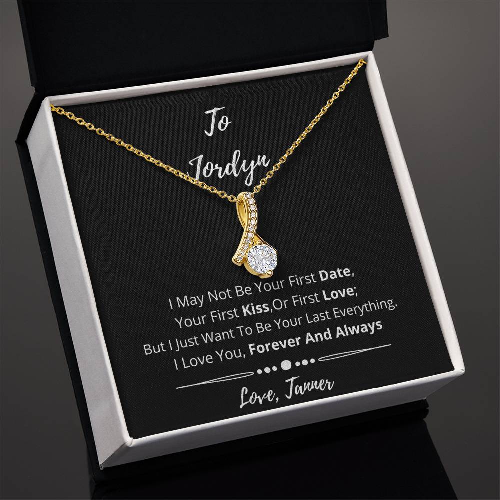 Imagine her reaction when she opens this stunning gift! The Alluring Beauty necklace features a petite ribbon shaped pendant that is sure to dazzle your special someone. Whether it's a birthday or anniversary, make sure to get her a gift she will love for years to come.